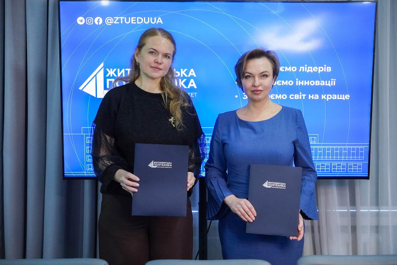 Проректор з науково-педагогічної роботи та молодіжної політики Олена Денисюк та начальник Управління Тетяна Руденька підписали Меморандум про співпрацю в межах проєкту «Спадщина Незалежності. Житомирщина».